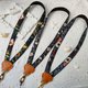 黑色系Y型减压韩国双色花布真皮手机颈挂绳