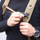 ◎包款外部两侧边配尼龙织带方便勾取各式随身物品。
