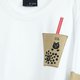 - + 一杯口袋热珍奶 + 黑糖口味布标 + 好多圆圆不同泡汤猫 + 袖上补丁珍珠猫 + 反折袖可变化袖长 + 满满印花黑糖珍珠猫