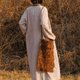 淺杏色的袍身與棕咖色的門襟、袖口相遇,像晨霧輕吻暮色,鋪陳出寧靜的底色。