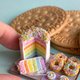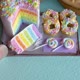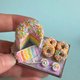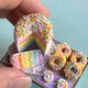 - Miniature-a set of desserts rainbow cake, donuts with colored sprinkles and lollipops. The miniature is made in 1:12 scale. All parts are fixed with glue. Polymer plastic, acrylic paints, acrylic varnish and cardboard are used as materials for manufacturing.