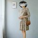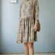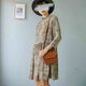 - →写意画灰粉红花卉印花 →立领/细折裙摆 →有内里