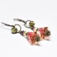 这是一款由德国古董珠饰,其形状宛如天使的号角,搭配黄水晶、石榴石等素材串连而成的耳环。