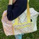 “清新配色 × 经典棋盘格,柔彩撞色设计,让旅行袋也能成为造型亮点。”