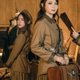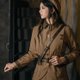 - 蒸汽朋克 单排扣 长袖修身 纽扣 卡其色 中长女款西服 外套制服