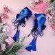 - Blue Cat Ears Features: - 2,5 inches tall kitten ears shape - luxury faux fur - crystallized with Preciosa - metal hoops with a charn - removable bows with tassel - fully wired and posable on the metal headband