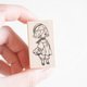 这款橡皮印章描绘了一位穿着“我最喜欢的衣服”的女孩,线条柔和温暖。