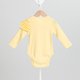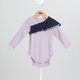 包屁衣以波浪剪接设计交错于胸前,结合不对称荷叶拼接,展现俐落又富层次的造型感。部压扣设计方便穿脱,让宝宝活动自在,穿搭也更有型。