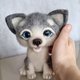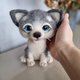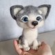 哈士奇狗觉得娃娃。 宠物损失纪念品。 幼崽小狗是毛毡玩具。
