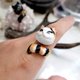 **TIMBEE LO联乘合作款手绘三色猫花猫黄铜18K镀真金彩绘珐琅开口戒指 宠物控**