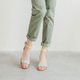 ◎ 后跟交叉延伸到脚踝的绕带设计视线往上提升,使双腿显得修长又纤细。
