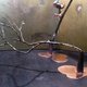 商品底座如小小的湖面以抛光的手法让红铜如镜面般,既可倒影又可支撑不规则的枝干承接花朵或树枝的部分以锻敲成型,保留制作过程中自然产生的敲痕,焊痕,火痕并染黑处理让毫不修饰与精致加工产生对比,也刚好有如细致的湖面与露出面的枯干,一种大自然宁静的表达