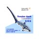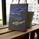 长尾鲨的尾巴,跟身体比例为1:1,我们特别用色块堆叠,以及3种不同的蓝色绣线,似有若无呈现他的身形,快速敏捷地,用尾巴打晕捕捉猎物。