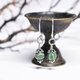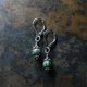 这款小巧耳环串缀着一颗翡翠绿色的江户蜻蜓珠。