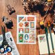 “邮票”这组的设计就是要充分展现感压贴的特性,以四季为主题的邮票图案,搭配极具特色的台湾地名邮戳,运用推叠的方式黏贴,呈现更具层次感的效果。