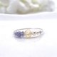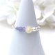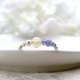 由文石、坦桑石和淡水珍珠三种天然宝石制成的金属丝戒指。