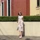 长袖连身长裙,无袖设计,采用印花“Sole E Mare”棉麻混纺材质。