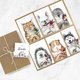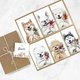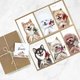 - 万用手绘风动物明信片组,并有干燥小花束的装饰,共有6套不同动物的组合,适合不同场景的万用卡片,材质为象牙卡,信封为牛皮色。