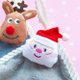 蓝色麋鹿、粉色三角雪人、黄色圣诞树、灰色红帽圣诞老公公