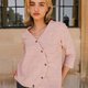 弧型排扣 / 七分袖 / 内有绑绳调整腰线 / 天然石扣