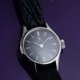 小巧的尺寸,对于手上不喜欢束缚感的你不失为一个优秀的选择,恰到好处的搭配,相当平衡,较少见的灰蓝色拉丝盘面,色泽纹理动人,搭配上精钢全抛光的立体时标 指针,着实动人。饱满圆润的四个表耳- horn lug 也是在这系列中不常出现的,值得拥有。