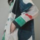 首先布料本身利用版片的不同裁切方向制造出不规律的结构,