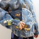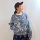 宽宽松松的大袖子,下摆跟袖子松紧收边,小圆领,休闲感的短夹克,只做了一边不对称大口袋,彩色的压扣,里面穿毛衣或是宽松袖子的衣服也不怕穿布料外套喔!