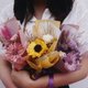 花材:太阳花/向日葵.兔尾草.金仗花.永生虫果.卡斯比亚.索拉花.满天星