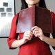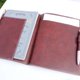 如果你还会写信写日记,如果你还会花时间去挑美丽的信纸好好收藏,那么你应该想拥有一个精致的信件夹。酒红色的仿皮配上一个小金角,打开之后左右边都可以直放笔记簿或信纸,右边还有笔套。非常贴心的设计,也很适合工作时用。