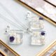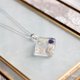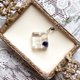 以浓郁的蓝色为背景,点缀花朵和珍珠,搭配闪粉与白色线条,设计出优雅的吊坠。利落的方形线条能让颈部线条看起来更为修长。深沉的藏青色是秋冬季节的绝佳搭配单品。