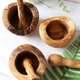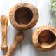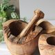 目前市面上常见是中国制造的大理石、陶、瓷等材质的研磨钵,木头制造的相对少见。本款研磨钵与研磨杵组合特别的地方在于,整组是由整块橄榄木挖块手工打磨制作而成,所以上面有天然而细致的橄榄木纹路,研磨钵一般适合作为香料、胡椒、香菜、蒜头的研磨钵,或是捣药钵来使用,用途多多喔!
