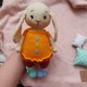 手工钩编的有趣兔子爱丽丝是个毛绒玩具。