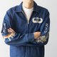 - 这种军事刺绣夹克大多称为“TOUR JACKET”,其性质类似“横须贺"手信夹克,属于纪念性的外套,前胸为空降师LOGO,后幅则是龙环绕富士山的刺绣,袖身分别绣有老虎以及龙,并配以罗马音“TORA”跟“RYU”,典型的大兵定制款色,酷炫的一