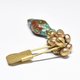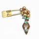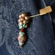 这是一款缀有绿松石与红玉髓镶嵌珠饰、饱满铃铛,以及绿松石与水滴红玉髓的组合式洗衣别针胸针。