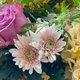 虽说粉色在任何年龄层的女性中均是大热之选,但事实上亦有部份女士不太爱粉红色。咸鱼白菜,各有所好,因此我使用GB002《Alice》的同一束花材:粉红色玫瑰及香槟色桔梗做主花,配衬轻柔的蕾丝花、浅粉色小菊、以及春天限定的黄相思作另一个尝试,配搭香槟金色系的包装纸,衍生出《Alice》的双生儿——《Alicia》,贵气大方,不落俗套😄。在婚礼中用作答谢双方母亲的感谢花束最适合不过,够大气又得体。