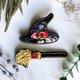 Materials: Italy sequins, gimp, hematite stars, eco-leather, sharp pins