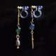 ・黑蛋白石:长约3~9mm,蛋白石尺寸不规则,会有大小差异;此款耳饰使用的蛋白石为黑色系半透明蛋白石,在黑底色下游彩更加明显。蛋白石硬度较低,部分蛋白石珠有石瑕、内部微裂痕(会避免使用瑕疵明显的材料,但仍可能有细看可见的瑕疵,天然石材质特性肯请理解)。
