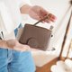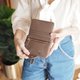- Mini wallet, short wallet, Mini purse, cow leather, Browm-Grey, Multi-purpose Zipper Wallet, Zip pouch