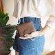 - Main zipper pocket with key holder. Accommodates for 10-20 banknotes, car keys or small cosmetics.