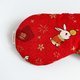 表层:中薄纯棉印花布(红底粉色兔子,有烫金)