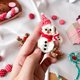 Christmas theme brooch Made of knitting yarn There are 2 types 1. Reindeer brooch size 4x6 cm. 2. Snowman brooch size 3x7 cm. Suitable as a gift for someone special during the festival.