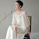 - 【100桑蚕丝】新中式复古中国风 灵动绣花/真丝灯笼袖長裙