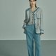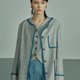 彩点小香风毛呢外套,羊毛混纺面料,彩点交织其中。