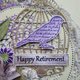 专为女性、同事打造的定制化退休祝福卡。这是一张可爱的手工卡片,点缀着小鸟图案。卡片上装饰着手工纸花与树叶,中央则有一枚雕刻餐巾纸。标签上写着“退休快乐”。您可以更改此标签,写上名字或其他想说的话。订购时,请透过消息告诉我您的需求。
