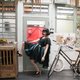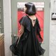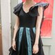马克把洋装设计成大大的V领背后有绑蝴蝶结喔