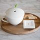 洁净纯白的白瓷呈现出咖啡杯完美的优雅型态,搭配专属杯盖,不仅可以适当保温,中间的洞口更能让Tea forte金字塔型丝质茶包最具特色的树叶延伸出来,视觉与味觉皆可饱尝一场飨宴。