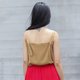 将传统的白色吊带换成这种耐看、有韵味的姜黄色,前片处采用分割手法,整体的气质就焕然一新了。