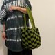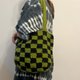 ⍢ 手工鈎织棋盘格纹手提袋 (可上肩)