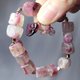梅花碧玺产量少,常见白、红、紫色共生,宛如抽象的梅花图案,花斑状的颜色分布具极具自然美感,其中更以玉化(透水)程度高者为佳。
