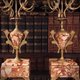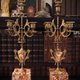 法国Napoléon III玫瑰粉大理石底座5口壁炉烛百年大烛台一对合售